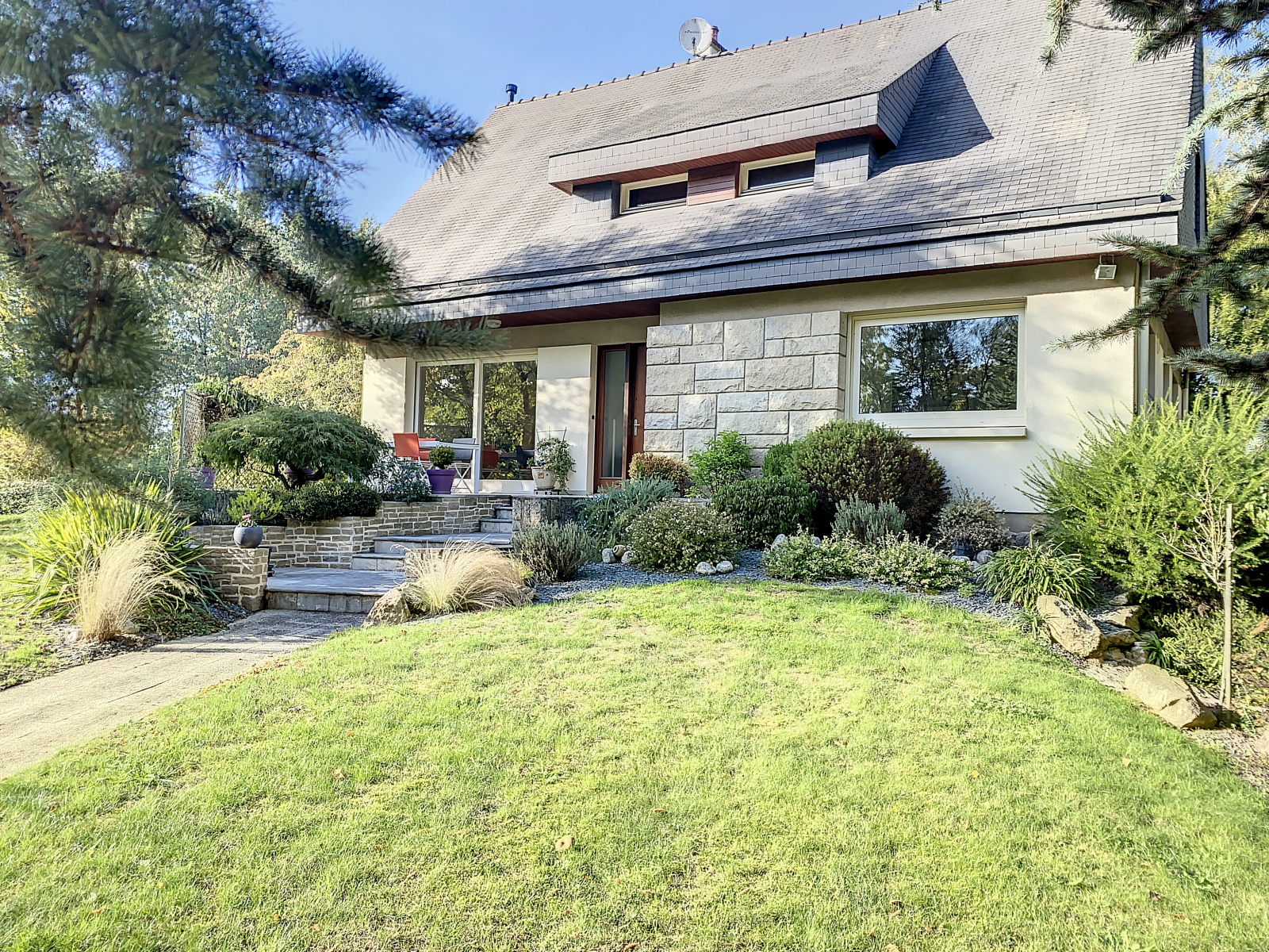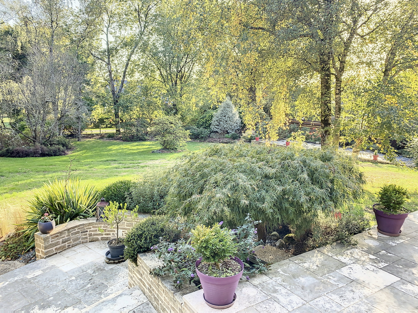 La maison est sur un magnifique jardin paysagé d'env 7955m2 avec double accés.